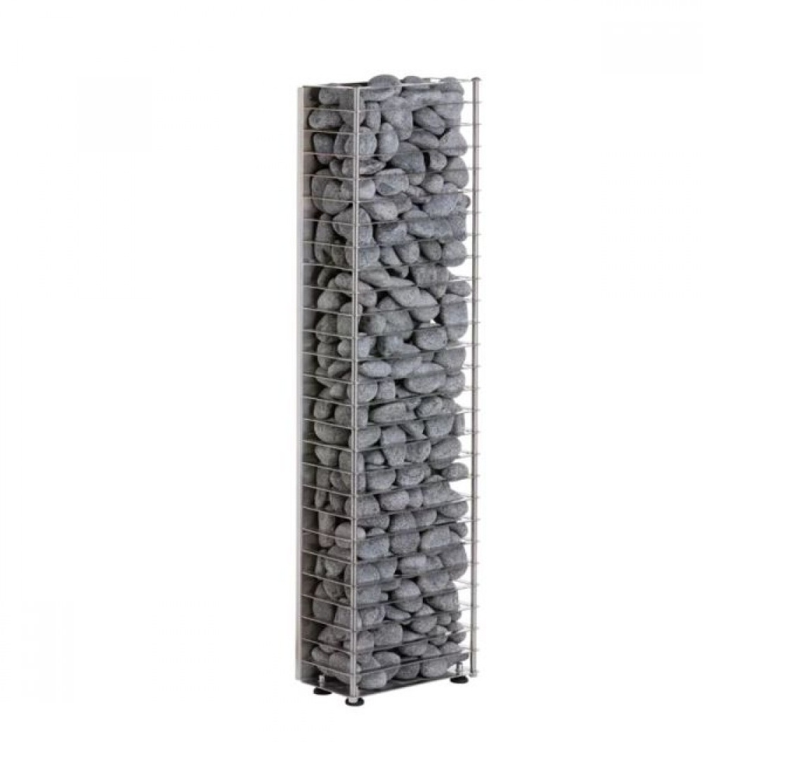 Kljub ozki in minimalistični zasnovi peč sprejme kar do 60 kg kamnov, kar zagotavlja mehkejšo, enakomerno toploto in prijetno paro. Posebna notranja zračna komora pospeši segrevanje do 25 %, hkrati pa podaljšuje življenjsko dobo grelcev. Stenska montaža in zelo majhne varnostne razdalje omogočajo enostavno vgradnjo tudi v zelo omejene prostore. Peč je izdelana iz kakovostnega nerjavečega jekla in zasnovana v Estoniji, kar zagotavlja dolgo življenjsko dobo ter zanesljivo delovanje.